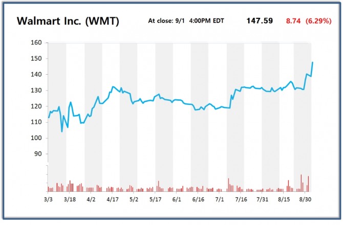 아마존의 주식 차트를 보면 이 인터넷 거인의 지배력이 어느 정도인지 알 수 있다.